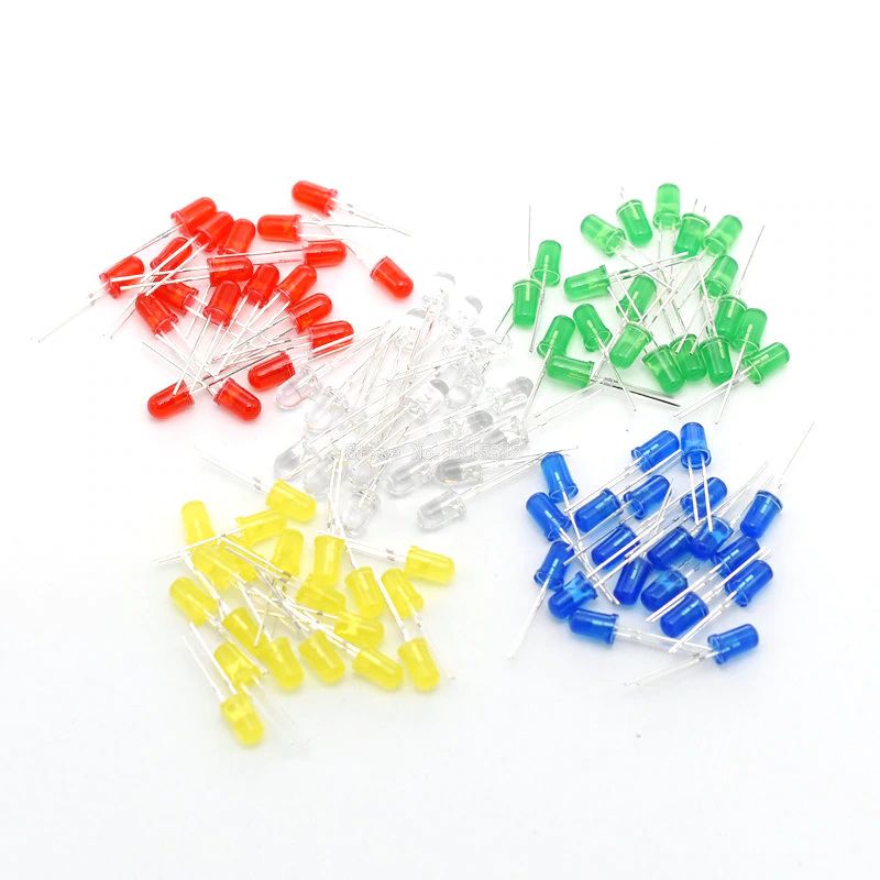 Light up your electronics projects with this 100-piece mixed LED pack. Includes a variety of colors and sizes to suit all your prototyping and DIY needs. Ideal for Arduino, Raspberry Pi, robotics, display boards, and decorative electronics, these LEDs are durable, energy-efficient, and easy to use.